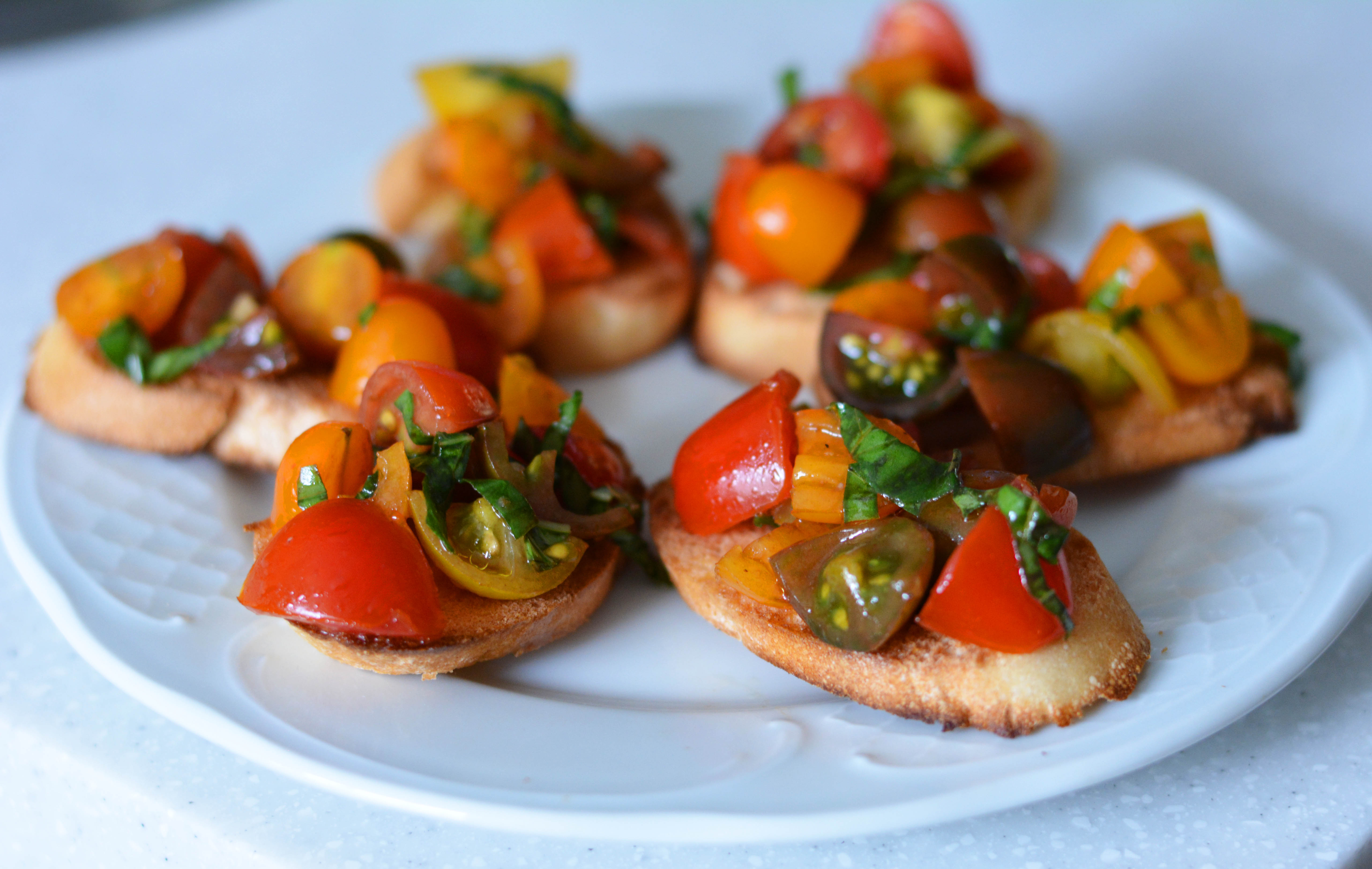 Obviously, I chose tomatoes. Tomato bruschetta, to be exact.